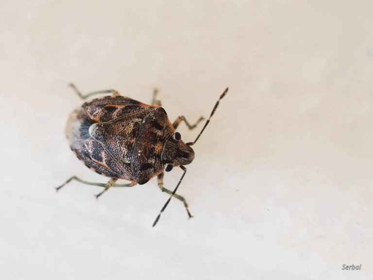 5-8 mm. Pequeña chinche de la familia Pentatomidae; se distribuye por el área mediterránea de Europa y Oriente Próximo; presente en el área mediterránea de la Península Ibérica; única especie de este género en la Península. Chinche con dorso compuesto por manchas y puntos de color negro, gris y blanco, ello acompañado de manchas o líneas anaranjadas (de extensión variable) …