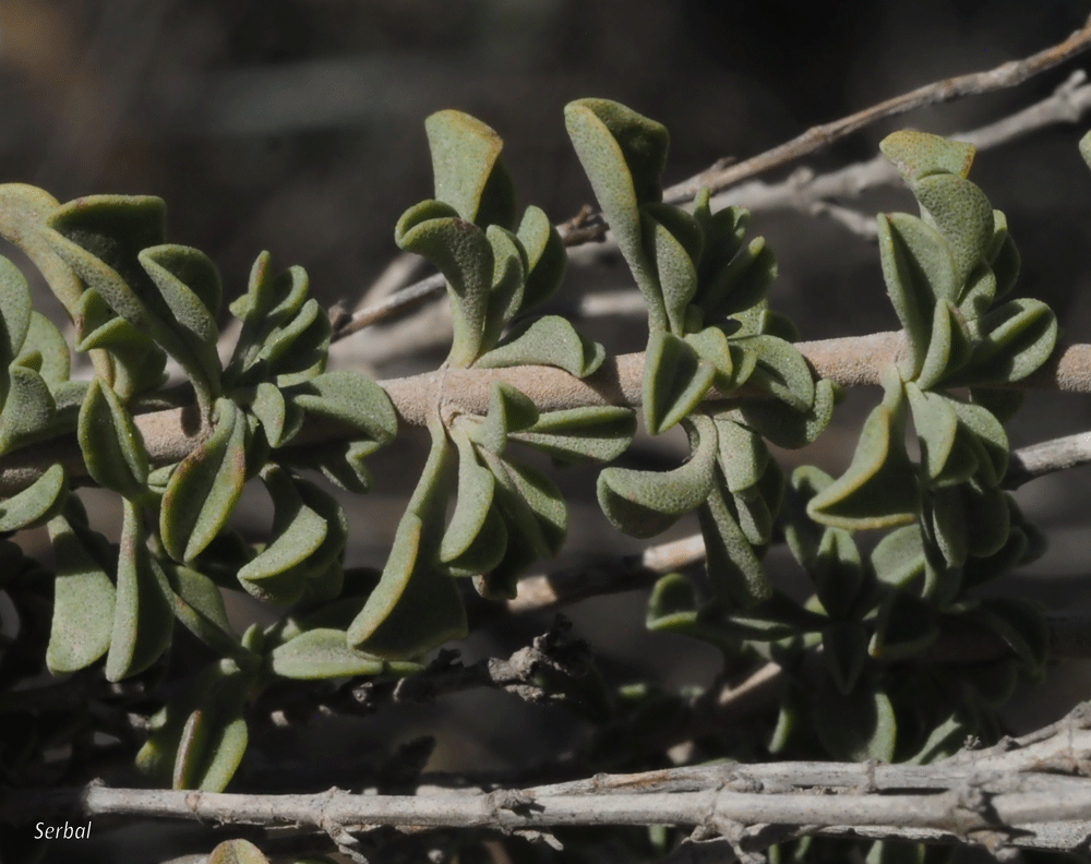 Tallos erectos e imbricados que se elevan de forma paralela, parte baja del tallo leñoso, color blanquecino y algo más oscuro en los jóvenes, pulverulentos.