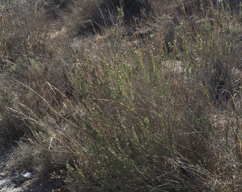 20-60 cm. Planta arbustiva aromática de la familia Lamiaceae; se distribuye por la región mediterránea europea; en el caso de la subespecie “canescens” que tratamos se circunscribe al sureste peninsular, concretamente Almería (zona costera a Levante), Murcia y Alicante.
