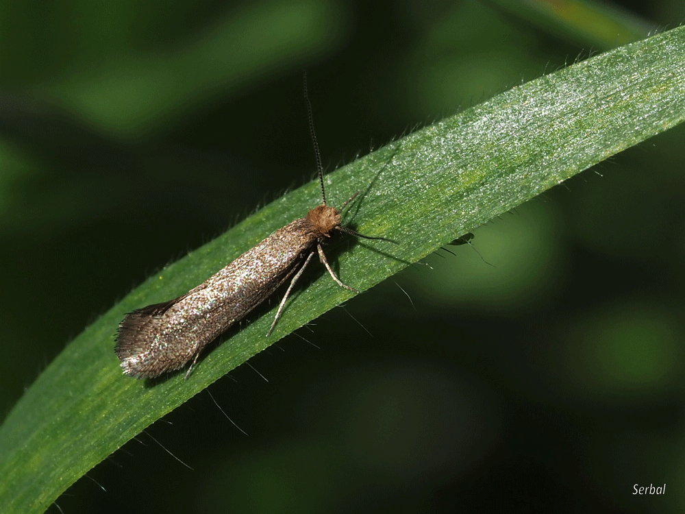 15 mm de envergadura alar. Micropolilla de la familia Tineidae; es un endemismo de la Península Ibérica; principalmente área próxima al mediterráneo, con algunas citas en el centro peninsular.