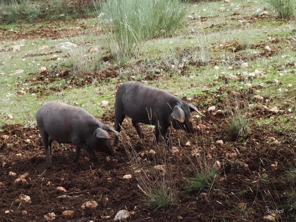 Fotos de febrero 2026, en la montanera, Serranía de Ronda; se muestra raza negro ibérico.