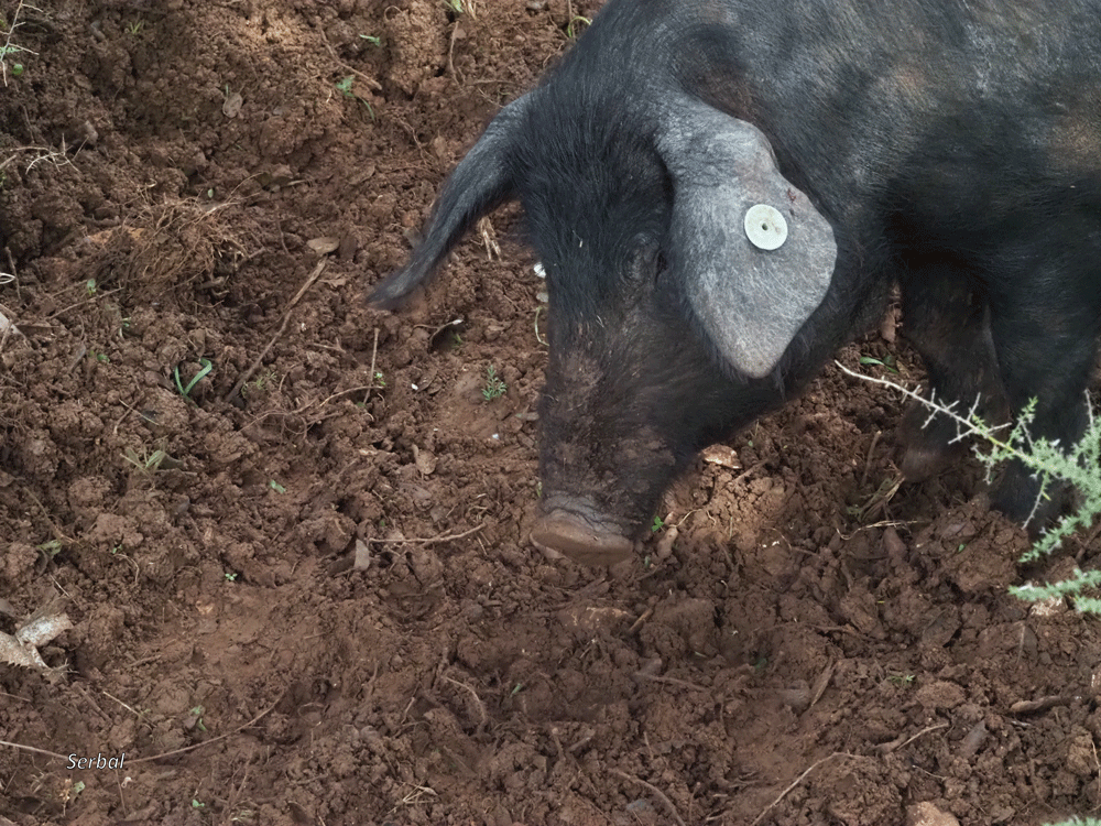 Centrándonos en nuestro cerdo ibérico, hay que decir que es la consecuencia de una adaptación al entorno; se cría principalmente en el suroeste de la Península Ibérica, Andalucía occidental, Extremadura, Salamanca, Alentejo y Algarve portugués; todas estas áreas con presencia de dehesas de encinas, alcornoques, quejigos, castaños (en menor medida), árboles que producen frutos como la bellota y castaña, especialmente la bellota, básicos para el engorde o montanera del cerdo, que se realiza en extensivo y va desde octubre a marzo; previamente (normalmente) se ha criado en granjas y alimentado con piensos vegetales.