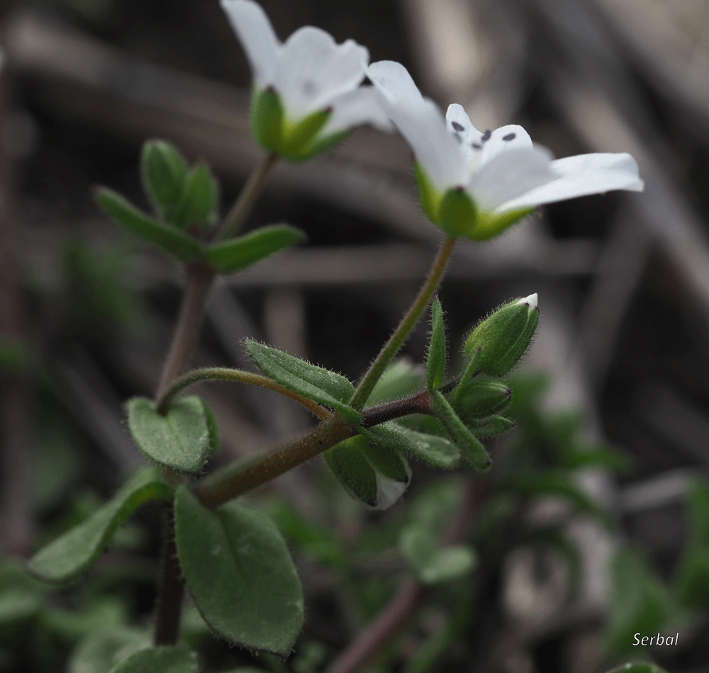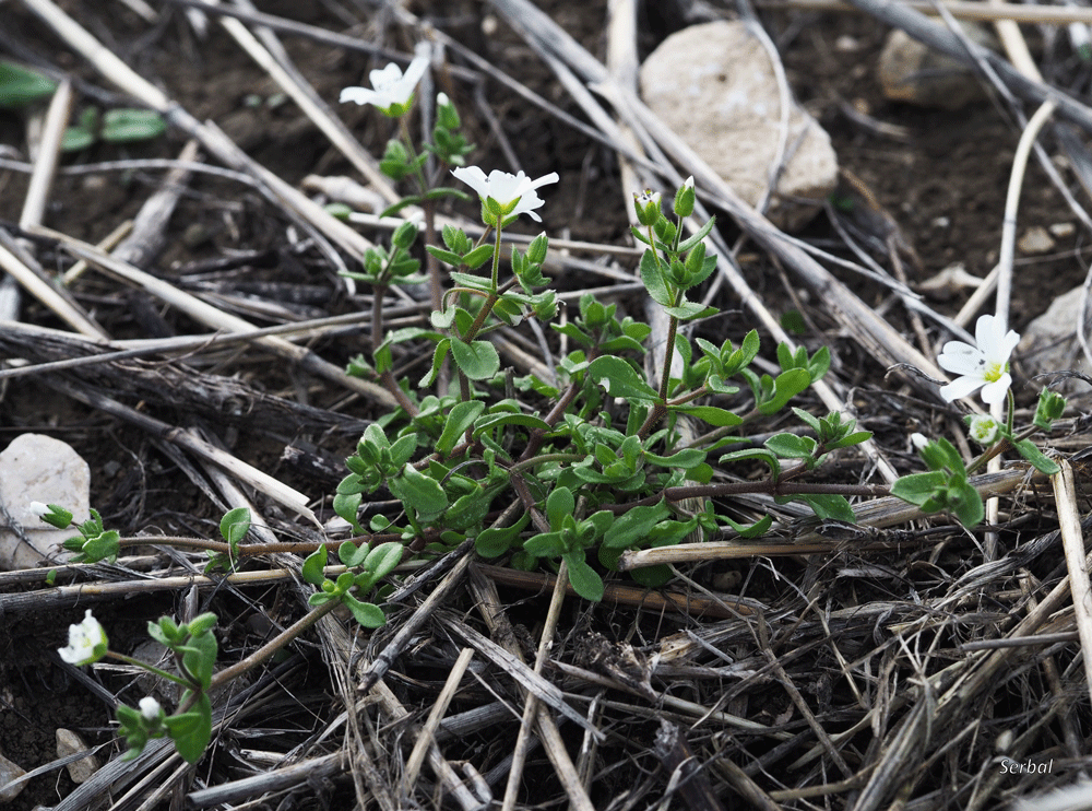 Discreta planta que crece en los espacios abiertos entre otras herbáceas más altas, no suele tener mucho porte pero si abundantes florecillas blancas, fotos de la Serranía de Ronda, marzo 2026, en nuestra finca familiar.