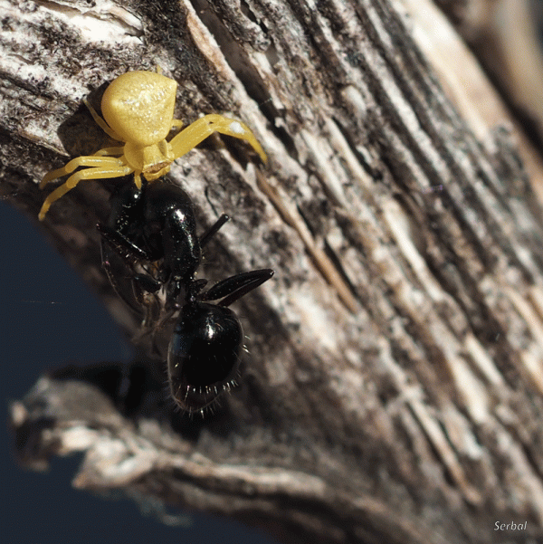 4 mm el macho y 10 mm la hembra. Araña cangrejo de la familia Thomisidae; se distribuye por Eurasia y Norteamérica; frecuente en la mitad …