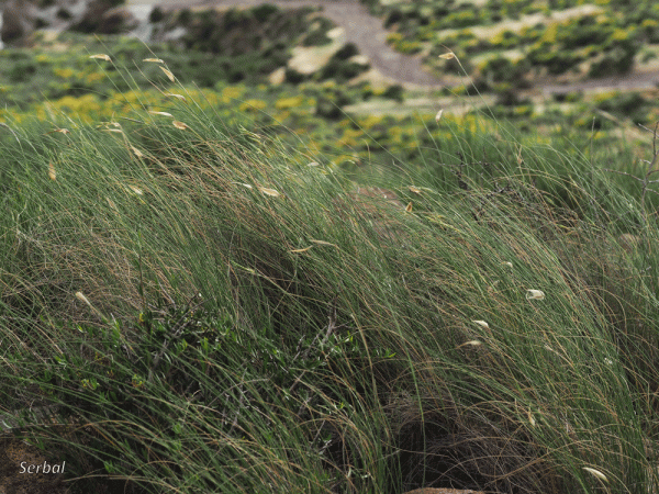 50-100 cm. Planta herbácea perenne de la familia Poaceae; se distribuye por el área mediterránea, al sur por todo el norte de África hasta Egipto, …