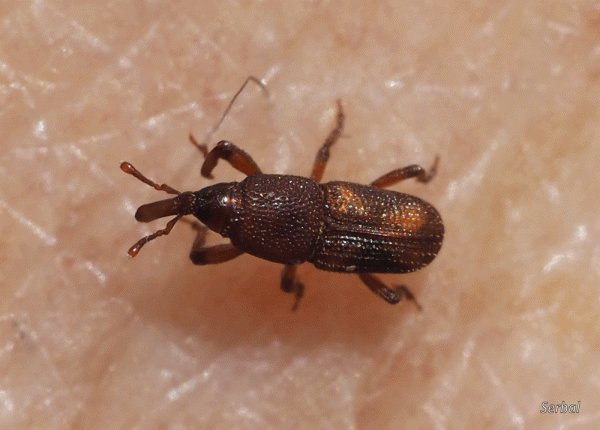 5-7 mm. Pequeño escarabajo gorgojo de la familia Curculionidae; es originario del Paleártico occidental, desde ahí se ha extendido a buena parte del mundo de …