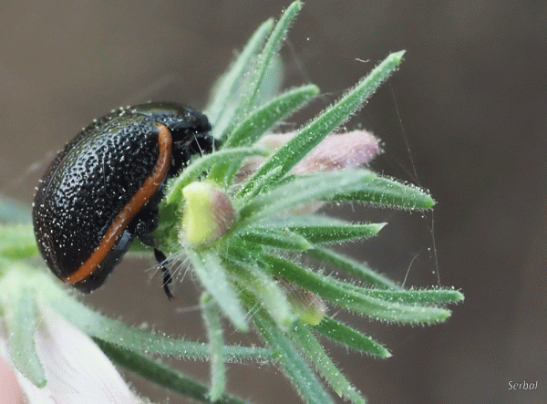 6-10 mm. Pequeño escarabajo de la familia Chrysomelidae; es un elemento Ibero-magrebí, presente en el noroeste de África, sur de Francia y la Península Ibérica. …