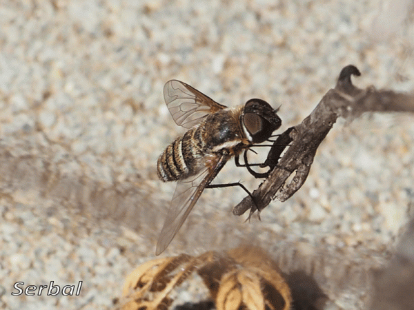 8-14 mm. Mosca de la familia Bombyliidae; tres especies presentes en la Península Ibérica. Son moscas con cuerpo convexo y abundante vellosidad de color gris …