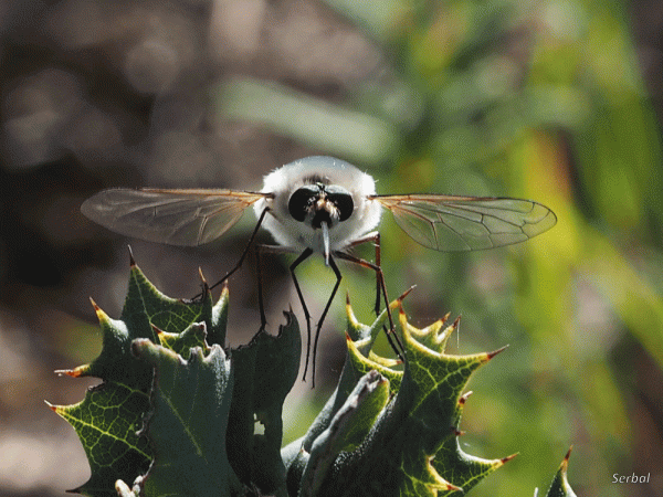 12-14 mm. Mosca de la familia Bombyliidae; se distribuye por la Península Ibérica, no encontrando registros en internet de otras localizaciones. Mosca más o menos …