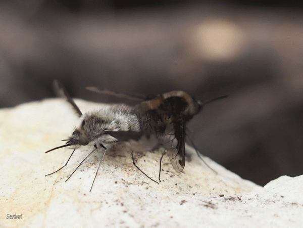 10-15 mm de longitud. Mosca de la familia Bombyliidae; se distribuye ampliamente por las zonas templadas de Eurasia y América del norte; común en las …