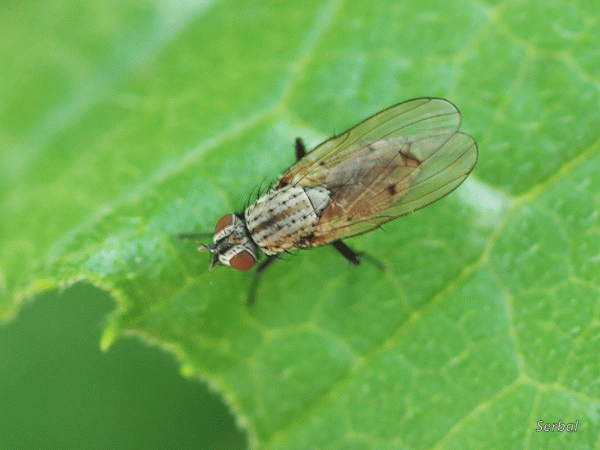 6-7 mm. Pequeña mosca de la familia Anthomyiidae; es de distribución paleártica, presente en la mayor parte de la Península Ibérica. Cuerpo de color gris …