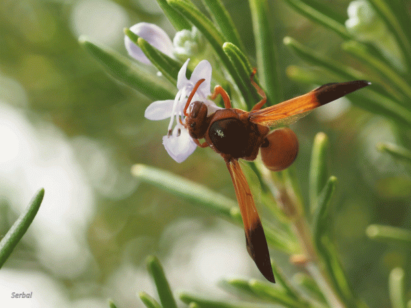 30 mm. Avispa solitaria de la familia Vespidae que se distribuye por la región mediterránea; común en la Península Ibérica. Avispa de color rojo cobrizo …