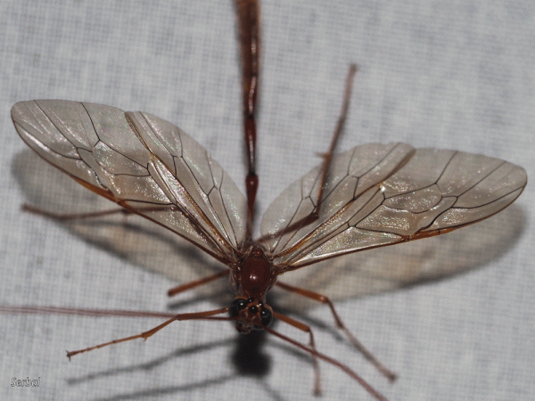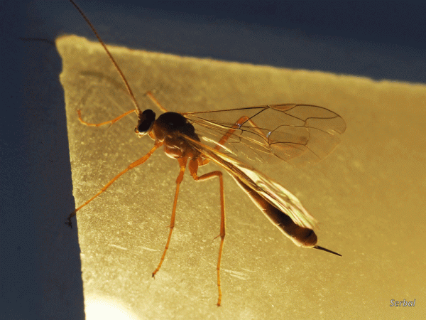 35-40 mm de envergadura alar. Avispa parásita de la familia Ichneumonidae; es un género cosmopolita de los cuales 21 especies viven en la Península Ibérica; …