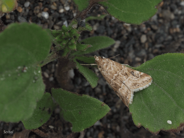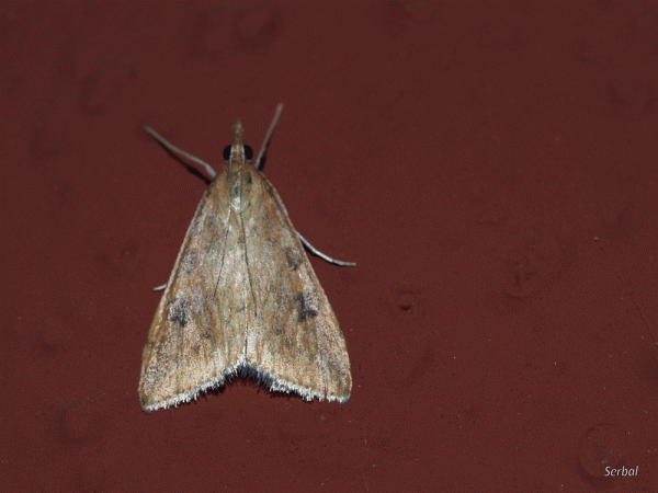5-6 mm. Pequeña mariposa de la familia Crambidae; es originaria de Europa occidental, desde aquí se ha extendido a la mayor parte del mundo de …
