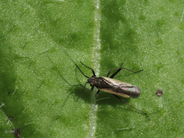 2-4 mm. Pequeña chonche de la familia Miridae; presente en la Península Ibérica. Color de los adultos negro, vello blanquecino en parte superior; cabeza con …