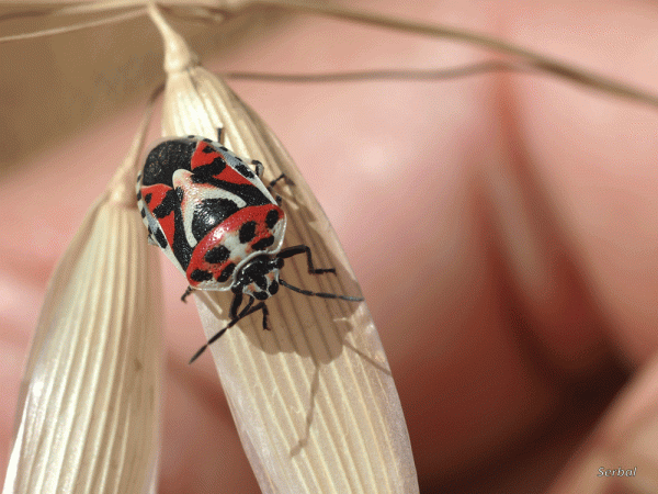 12 mm. Chinche punteada de la familia Pentatomidae que vive en el arco mediterráneo, zona mediterránea europea y zona mediterránea africana. Parecida a la chinche …