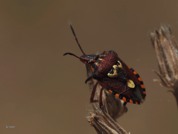 7-12 mm. Chinche de la familia Pyrrhocoridae; se distribuye por todo el Paleártico hasta el noroeste de China, India, recientemente también en América Central y …