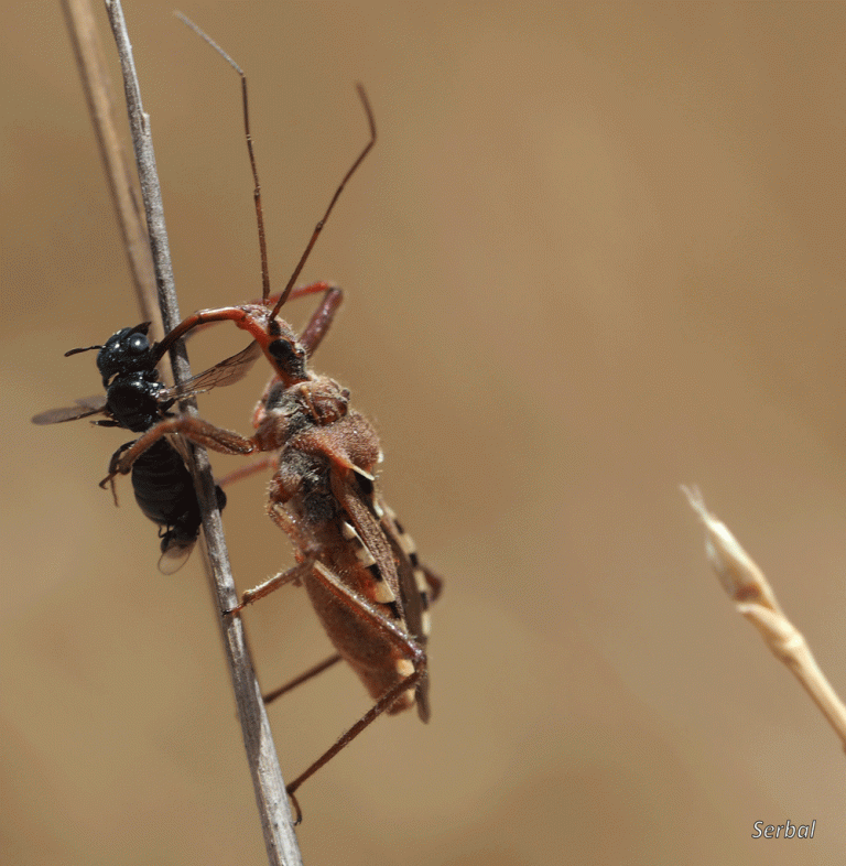 12-18 mm. Chinche de la familia Reduviidae; se distribuye por el área mediterránea y Oriente Próximo y Medio; presente en la mayor parte de la Península Ibérica. Insecto adulto con cabeza cuadrangular y grandes ojos negros en el lateral, antenas con cuatro artejos, d ellos cuales el segundo es mucho más largo que los otros; tórax trapezoidal alargado con gran …