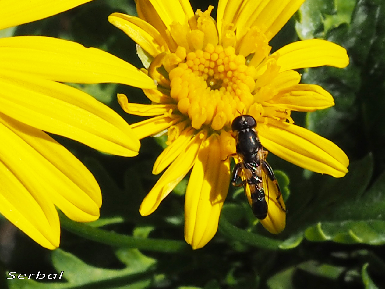 9 mm. Mosca de la familia Syrphidae que se distribuye Paleárticamente, por centro de Asia hasta Japón; bastante común en la Península Ibérica. Se caracteriza principalmente por tener el tórax negro con dos franjas grises en su zona dorsal, abdomen negro con tres pares de franjas anchas amarillas, el par más proximal no se une en la zona dorsal, los …